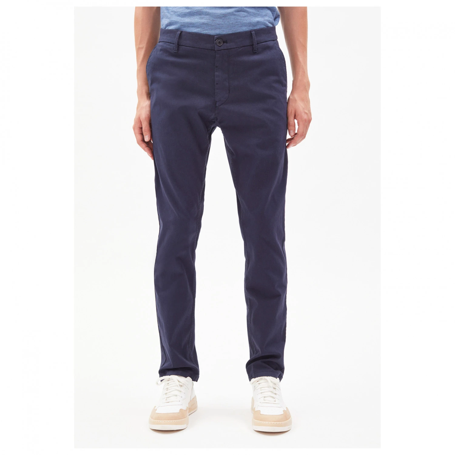 Le pantalon Aato Light de l’entreprise ARMEDANGELS est fabriqué de manière durable, sans recours aux pesticides toxiques, car il est en coton bio et équitable, issu d’une production contrôlée. De plus, du coton recyclé et de l’élasthanne sont utilisés pour garantir une liberté de mouvement et un confort optimaux. Le tissu est respirant et agréablement doux sur la peau.