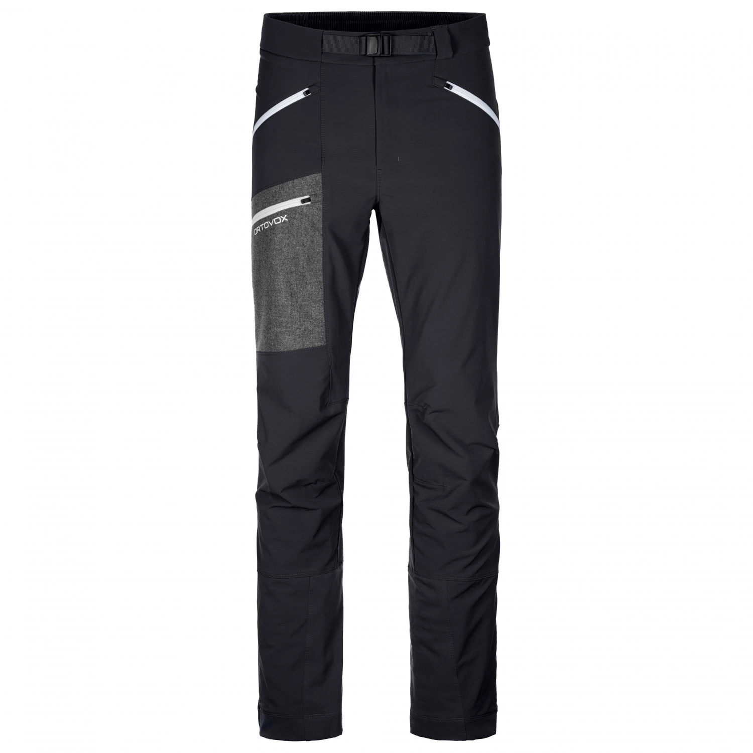 Un compagnon polyvalent pour les journées de ski de randonnée et les randonnées alpines : le Cevedale Pants de chez Ortovox ! Le matériau en stretch bidirectionnel Merino Airsolation est particulièrement résistant à l’abrasion, coupe-vent et déperlant, et grâce à sa structure intérieure rainurée, il offre une isolation agréable. Le pantalon impressionne donc quand le vent souffle et que la pluie tombe, mais aussi pendant les journées ensoleillées. Et les détails visuels ne manquent pas non plus : la poche porte-carte qui se trouve sur la cuisse est en loden traditionnel de la société autrichienne Steiner. Viennent s’ajouter les fermetures à glissière des poches et la ceinture.